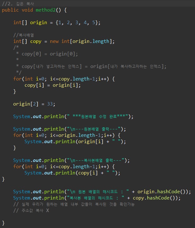 1) arraycopy() 메소드를 이용한 Deep Copy