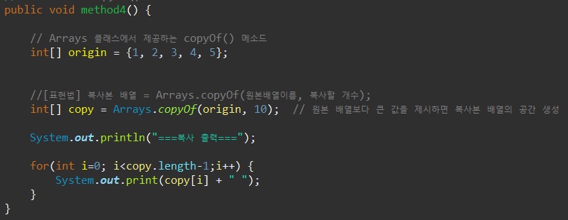 무조건 원본배열의 0번 인덱스부터 복사가 진행됨(지정된 개수만큼)